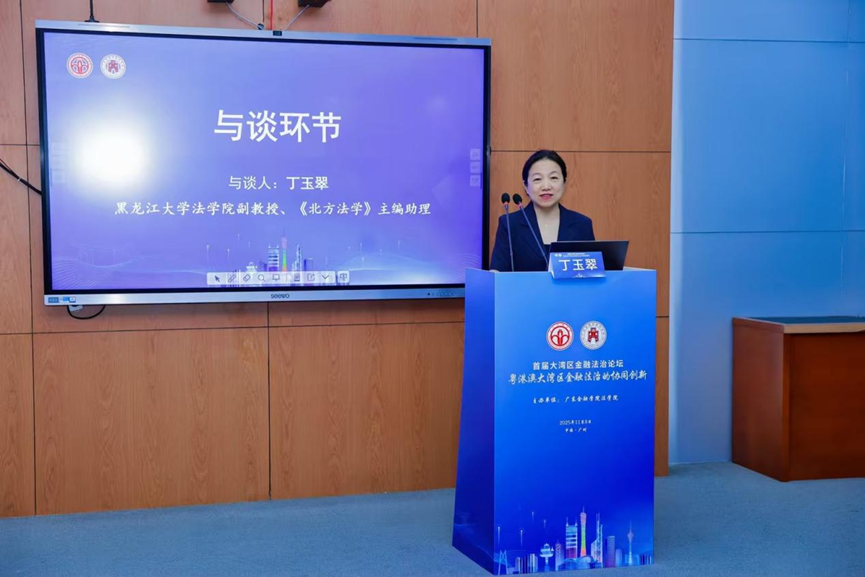丁玉翠副教授在分论坛二“跨境金融监管协同与法律适用”担任与谈人。从比较法与区域协同视角出发,强调在推动跨境金融合作过程中,必须在开放与安全之间寻求动态平衡。她指出,应通过分层协作与机制对接,逐步推动粤港澳三地监管规则的衔接与融合,为构建稳定、透明、高效的跨境金融监管体系提供智力支持。