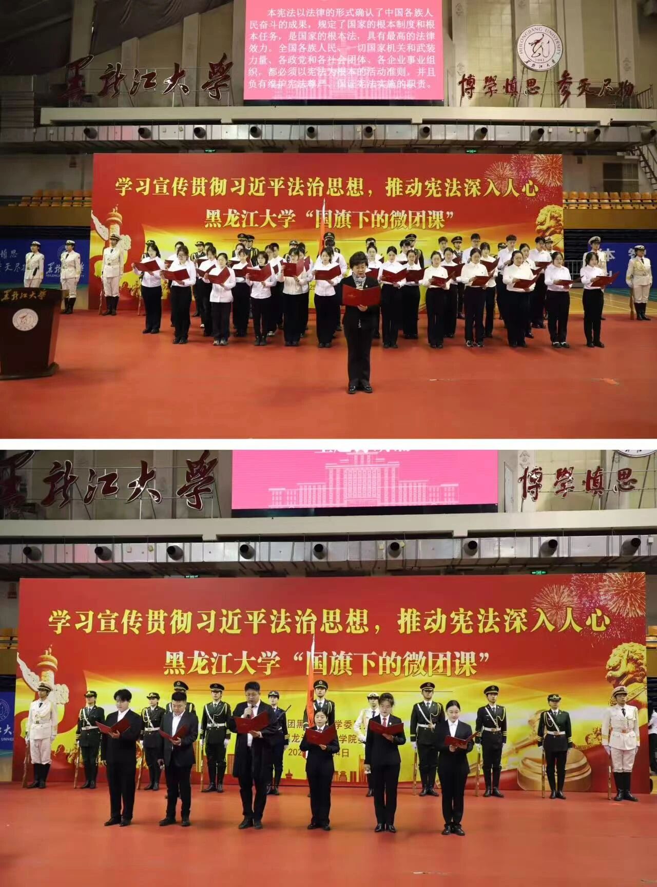 以“学习宣传贯彻习近平法治思想,推动宪法深入人心”为主题,在黑龙江省法学会的指导下,组织开展了理论实践相结合、线上线下相结合、校园内外相结合的宪法宣传教育“十个一”系列活动。