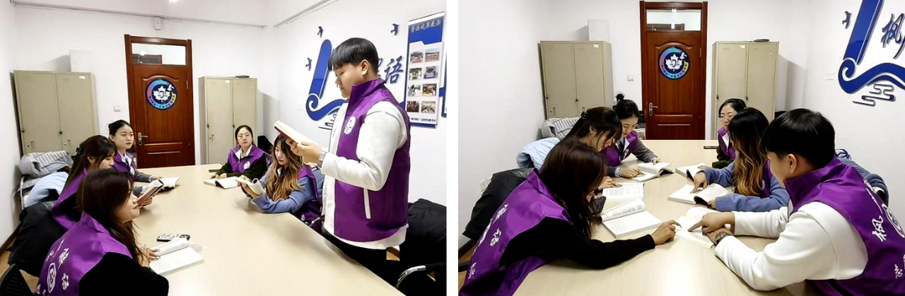 “枫声解语”志愿普法服务驿站举办国家宪法日主题读书会,活动设有“经典领读”“法条共析”“感悟分享”等环节,学生从宪法条文、学术解读、案例评析中汲取智慧,在交流互动中深化对中国特色社会主义法治道路的认识,于书香墨韵间筑牢遵纪守法、知行合一的思想根基。