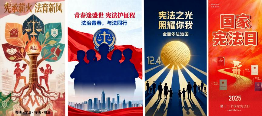 举办“宪承薪火,法育新风”主题海报设计大赛,鼓励同学们以青春视角挖掘红色基因,以创新形式展现宪法权威及时代价值,推动法治精神入脑入心,让宪法成为灵魂深处的信仰。同学们踊跃投稿,众多优秀作品通过象征性构图、鲜明色彩与深刻立意,生动诠释了宪法与公民生活的紧密联系,彰显了社会主义法治的蓬勃生命力。