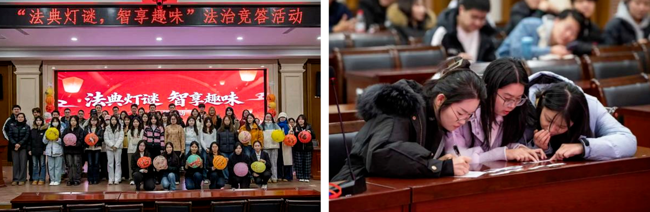 围绕《中华人民共和国宪法》《中华人民共和国民法典》中与生活密切相关的公民的基本权利和义务、知识产权、侵权责任等内容,以传统灯谜为载体,开展“法典灯谜,智享趣味”法治竞答活动,引导学生在趣味互动中学习宪法法律知识,感受传统文化魅力,营造“一站式”学生社区尊法学法守法用法的良好氛围。
