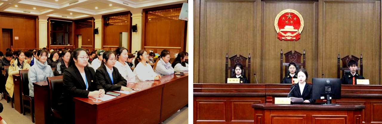 举办“模拟法庭”展演、“初试法槌”知识竞赛等活动。本次展演以跨境电信诈骗为主题,十余名学生分别饰演法官、公诉人、被告人等相关角色,生动演绎了诈骗团伙的作案手段和受害者的受骗经历,并完整再现法庭调查、法庭辩论等庭审环节。“情景剧+模拟庭审”的沉浸式展演提升了同学们的实务技能,更以真实案例来提醒师生筑牢网络安全防线。