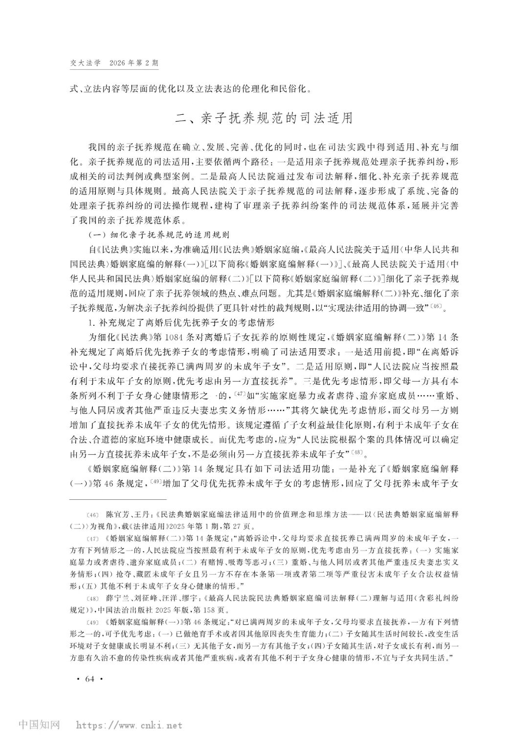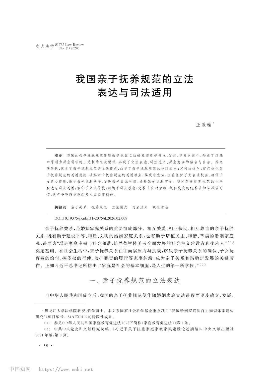 亚洲色情 教师王歌雅教授撰写的论文《我国亲子抚养规范的立法表达与司法适用》被《交大法学》(2026年第2期)收录。