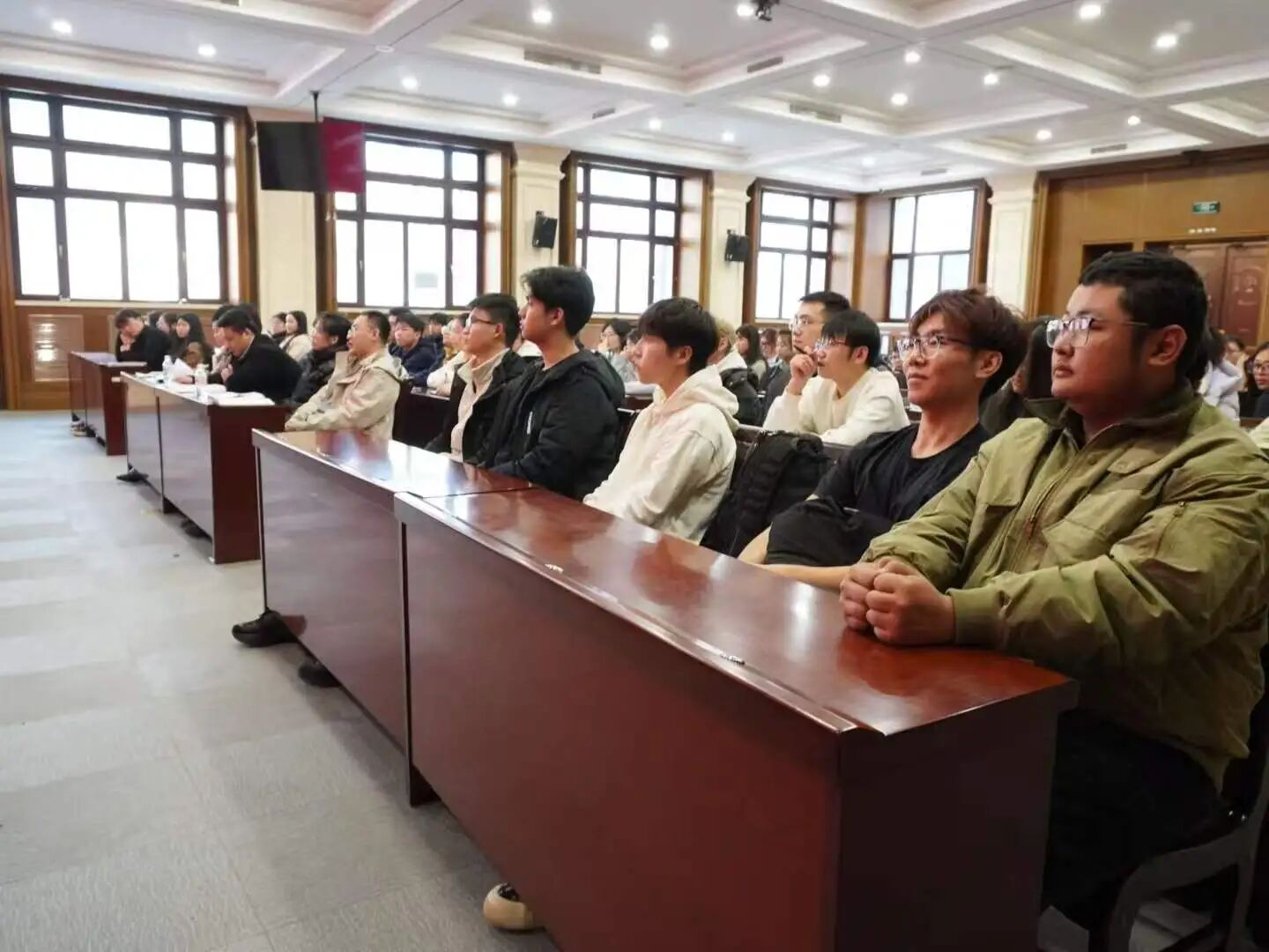 党委副书记董捷,各年级辅导员老师,以及各学生组织主要负责人、班级干部等百余名学生参加,本次活动由辅导员王博主持。